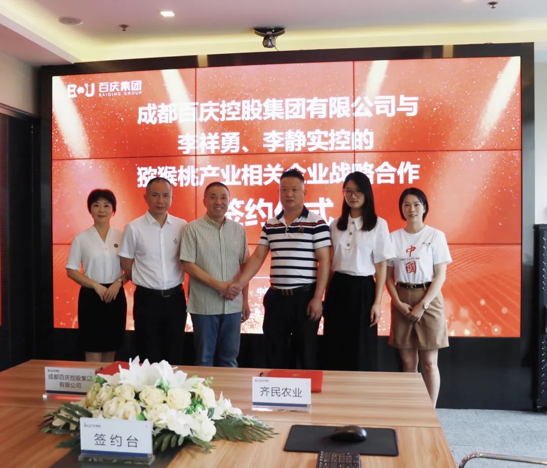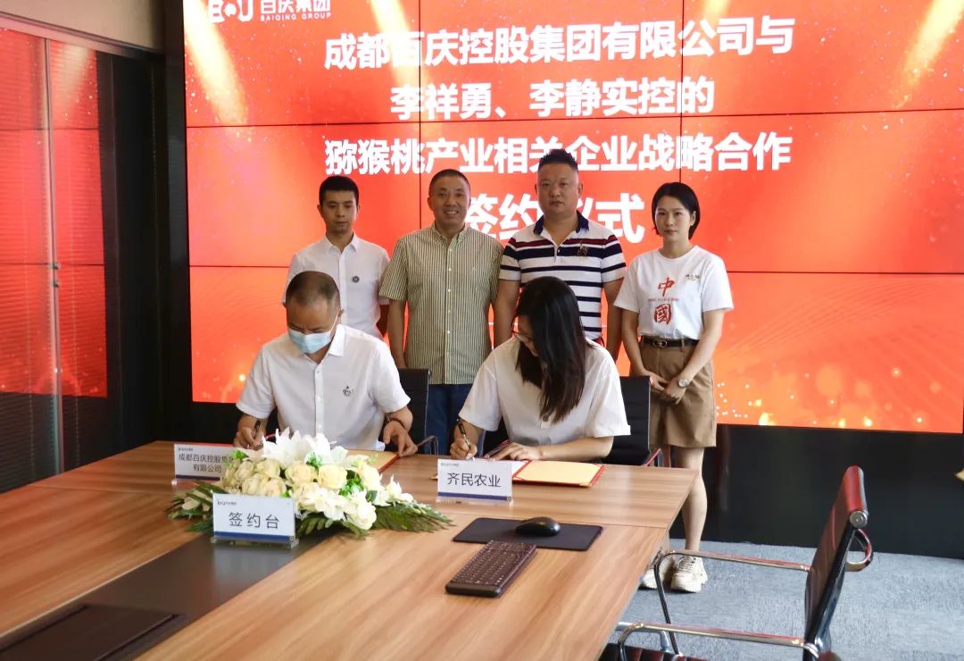 7月19号上午,百庆控股集团与成都齐民农业科技有限公司在百庆集团大会议室举行了猕猴桃产业相关企业战略合作协议签约仪式。百庆控股集团董事长张庆、总裁张强、董事办主任蒲亨辉、齐民农业董事长李祥勇、总经理李静、销售总监刘艳婷等双方领导和相关负责人出席了签约仪式。